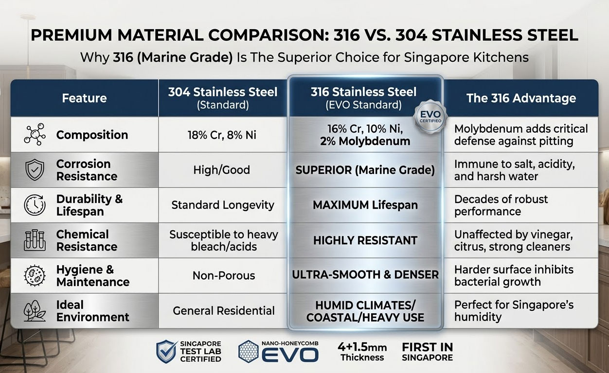 A Healthier Home: The ultra-smooth, non-porous 316 steel creates a natural barrier against bacteria, keeping your food prep area safe and sanitary.
